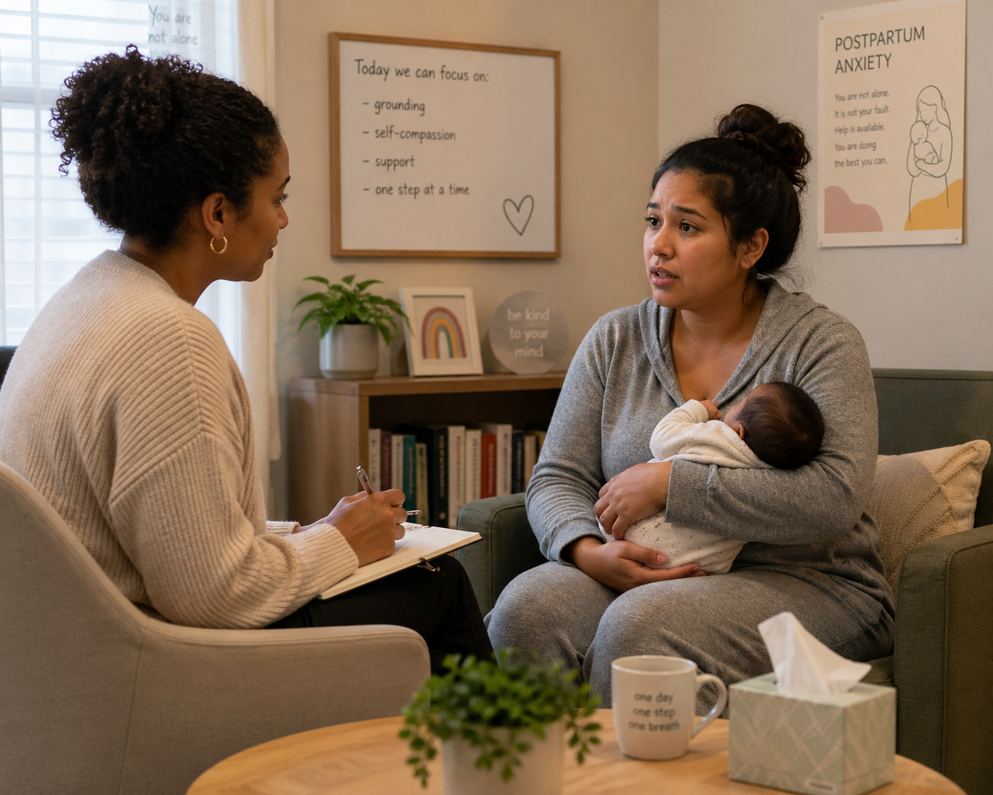 A key aspect of perinatal mental health therapy is creating a space that reduces shame and isolation. Many clients struggle with the gap between expectations and lived experience, and benefit from compassionate, nonjudgmental support that normalizes their feelings while also addressing symptoms. Therapy may also involve collaboration with medical providers, advocacy, and attention to cultural, spiritual, and systemic factors that influence care.